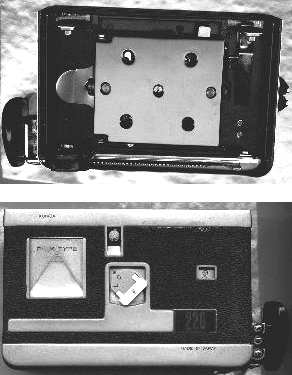 Different roll holder for rollfilm 120 and 220. Silver and black roll holders has been avaiable. Cover for lightsafe transport of a preloaded roll holder. For there is no dark slide needed, there is no mid-of-roll change of filmback possible. Using