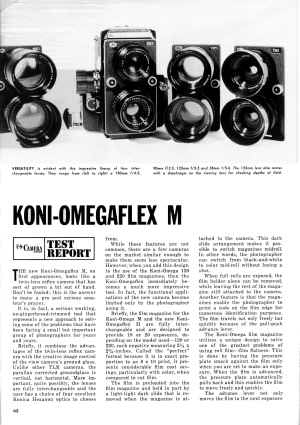 1968 The Koni-Omegaflex M was originally reviewed in the November 1968 issue of the magazine 'U.S. Camera'. | 1968 Die Koni-Omegaflex M wurde in der Novemberausgabe 1968 des Photomagazins 'U. S. Camera' erstmals vorgestellt. | 1968 Le Koni-Omegaflex M a été présenté la première fois dans l'édition de novembre 1968 dans la revue de photo 'U. S. Camera'. |