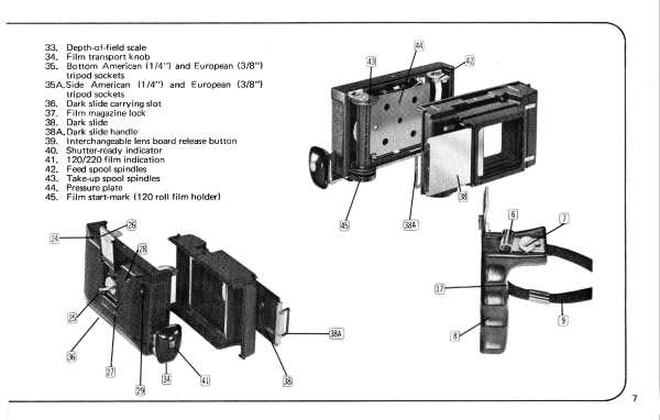 f5,6/58mm, f3,5/90 mm, f3,5/135mm, f4,5/180 mm, tous avec obturateur à