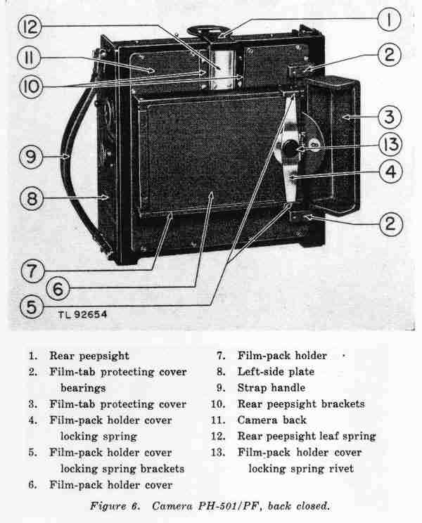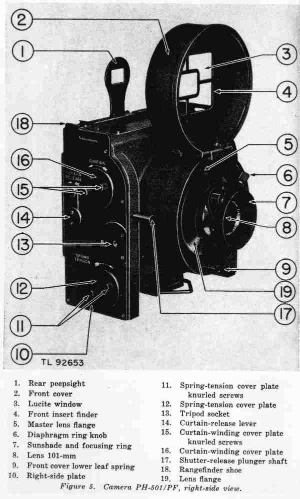 La lentille de 9-inch f/4,5 (à f/32) est employée seulement quand il est nécessaire de garantir une vue de gros plan d'un objet plus de 50 feet de la caméra. Mise au point de 10 feet à infini. Son domaine d'envergure est indiqué exactement quand le petit rectangle dans la couverture est dressé dans l'arrière viseur. |